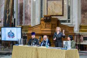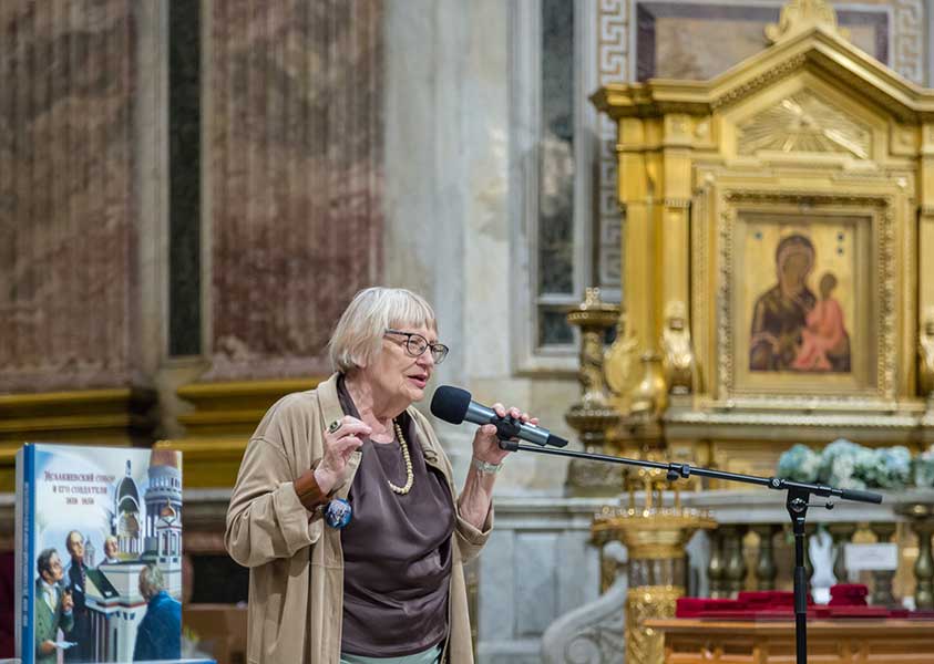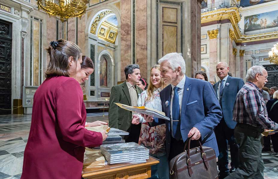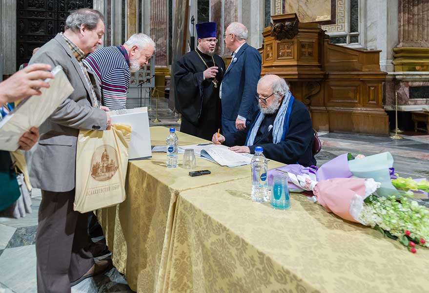 От лица художника, который не смог присутствовать, выступила участник создания книги, мама Гиорги Панайотова — И. А. Бессан, его друг, советчик и сотрудник. Инна Аркадьевна поблагодарила всех собравшихся и назвала книгу «соборным делом» — данью благодарности создателям Исаакиевского собора и плодом труда многих людей. Она также выразила благодарность всем участникам проекта, отметив вклад каждого. Особые слова признательности она адресовала Юрию Витальевичу за чуткое руководство: он направлял команду, подсказывал ключевые моменты для раскрытия в книге, объединял коллектив и ставил посильные задачи, которые все выполняли с радостью.