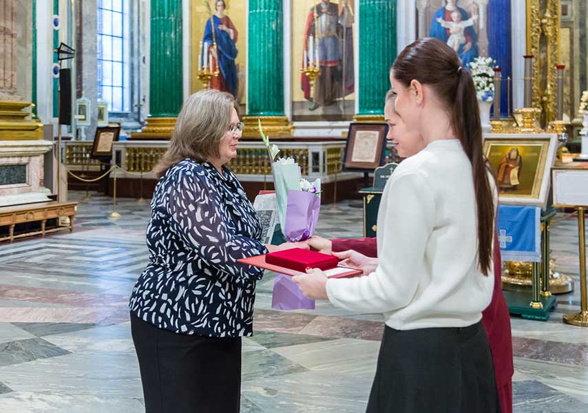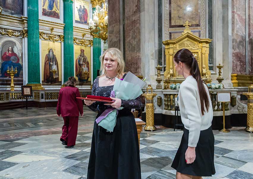Важной частью вечера стала церемония награждения. Юрий Витальевич вручил благодарности и памятные медали «Благотворитель» Г. Х. Панайотову и Е. В. Шаповаловой. Благодарностями и памятными медалями «200 лет начала строительства и освящения Исаакиевского собора» были награждены И. А. Бессан, Е. В. Медведкова, куратор издания, заместитель директора по научной работе А. В. Голованова и редактор издания, начальник редакционно-издательского отдела В. В. Хорина.