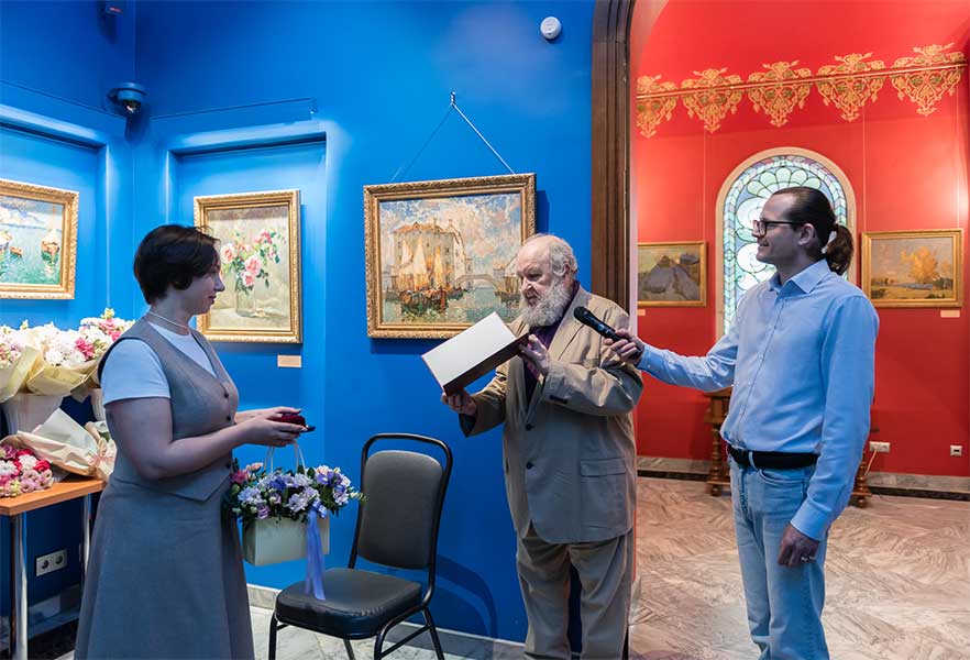 Генеральный директор музея «Новый Иерусалим» А. В. Антипенко выразила признательность директору и коллективу Государственного музея «Исаакиевский собор» за теплый прием и инициативу проекта, подчеркнув символичность проведения выставки именно в Санкт-Петербурге. Для Горбатова этот город был местом становления как художника, где он обретал свой стиль и художественный язык. Анна Васильевна отметила, что за годы хранения коллекции в «Новом Иерусалиме» Константин Горбатов стал одним из самых любимых художников у посетителей. Она особо выделила важность нынешней выставки, указав на путь коллекции: «Горбатов уже побывал в Нижнем Новгороде, Владимире, и мы рады, что он представлен теперь в вашем музее». Помимо этого, Анна Васильевна оценила камерность экспозиции в Часовне-музее, назвав пространство удачным для восприятия его работ. А. В. Антипенко отметила, что посетители могут не читать о выставке или не знать, кто такой Константин Горбатов, но они его почувствуют. Невозможно остаться равнодушным: в его картинах столько красок и жизни. Эта мысль перекликается с концепцией «искусства как праздника», которую музей «Новый Иерусалим» развивает в своих проектах. Анна Васильевна завершила речь поздравлением гостей и благодарностью руководству и коллективу петербургского музея за воплощение проекта.