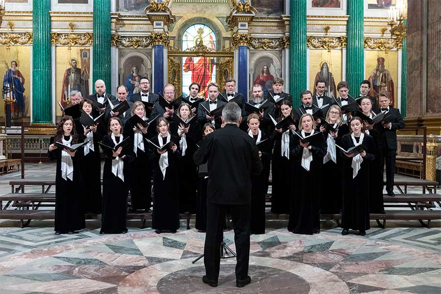 В исполнении Концертного хора Санкт-Петербурга под управлением дирижера Андрея Охлобыстина прозвучали произведения разных эпох и жанров: торжественный концерт для двух хоров Дмитрия Бортнянского «Тебе Бога хвалим», духовное песнопение Милия Балакирева «Свыше пророцы», лирические композиции Петра Чайковского и Сергея Танеева на стихи русских поэтов. Особый отклик у слушателей нашли песни военных лет «Журавли» Яна Френкеля и «Ленинградские вечера» Василия Соловьева-Седого, а также «Молитва» Юрия Фалика на стихи Лермонтова. Завершили выступление задорная «Кенгуру» Сергея Екимова на слова Николая Гумилева и «Марш веселых ребят» Исаака Дунаевского.