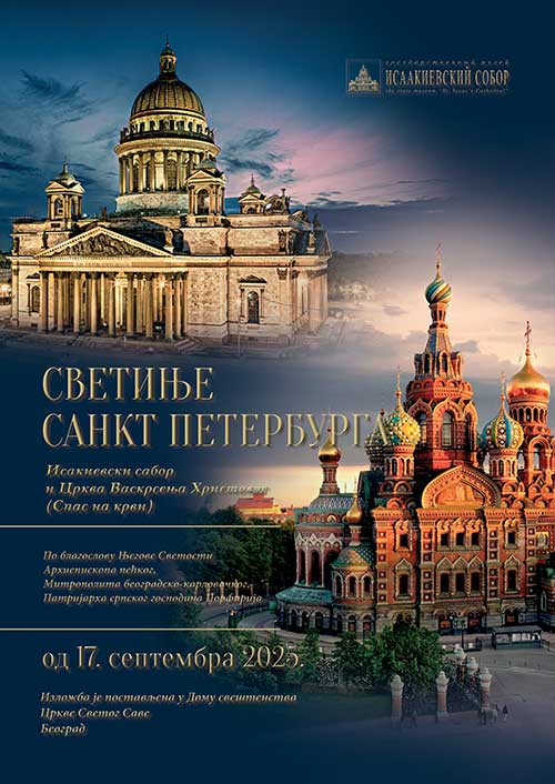 17 сентября 2025 года в столице Республики Сербия Белграде по благословению патриарха Сербского Порфирия откроется фотовыставка «Святыни Санкт-Петербурга», подготовленная Государственным музеем «Исаакиевский собор».