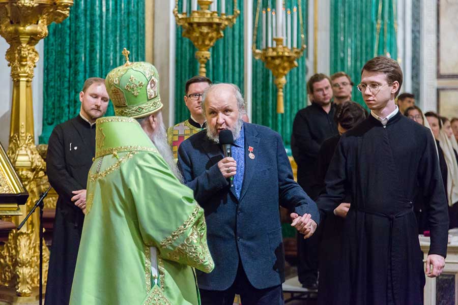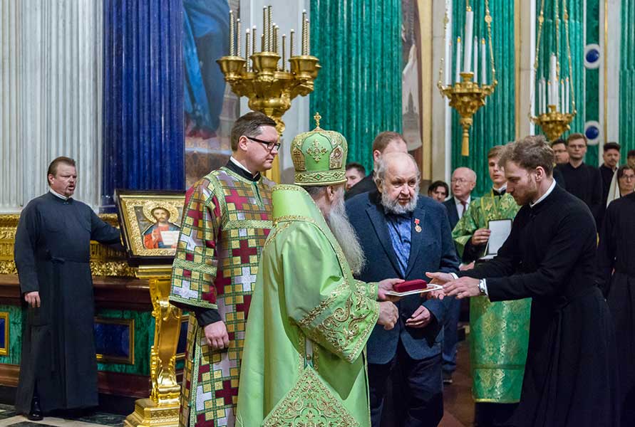 После награждения он обратился к митрополиту Санкт-Петербургскому и Ладожскому Варсонофию с глубокой благодарностью за совместную молитву.