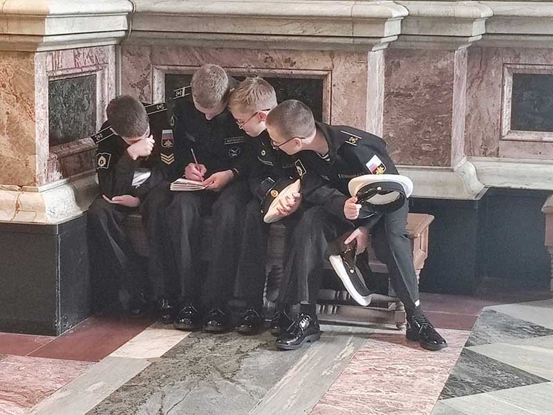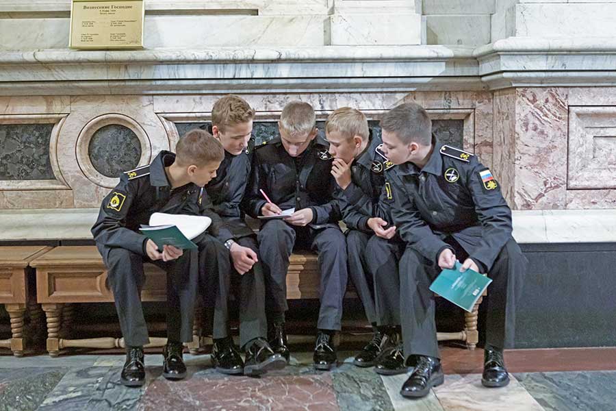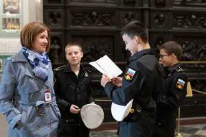 В Государственном музее «Исаакиевский собор» воспитанники седьмых классов Нахимовского военно-морского училища приняли участие в викторине «Святые защитники земли русской в убранстве Исаакиевского собора», посвященной памяти небесного покровителя Санкт-Петербурга святого благоверного князя Александра Невского.
