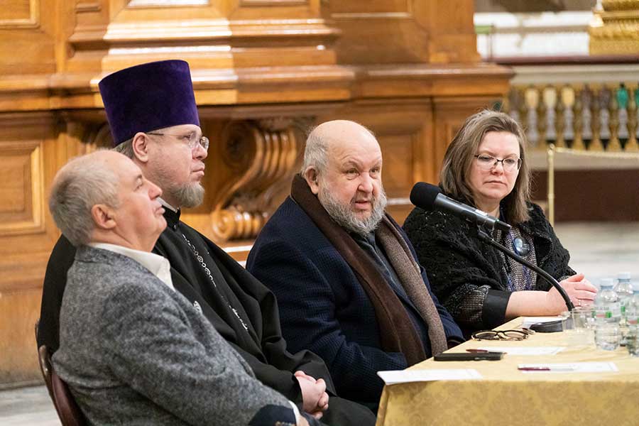 Он рассказал об уникальных материалах, хранящихся в университете: интереснейших чертежах, документирующих процесс создания собора, и коллекции из около 90 книг из личной библиотеки Монферрана с его пометками. Продолжая мысль отца Романа о символическом наследии, Игорь Павлович подчеркнул, что в соборе соединился духовный замысел, его художественное воплощение и инженерная мысль, без которой такое сооружение невозможно.