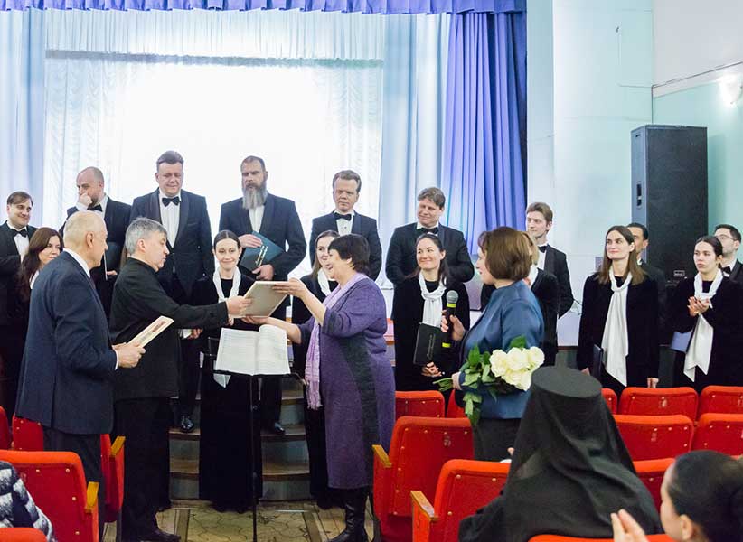 Благодарственное письмо директору Государственного музея «Исаакиевский собор» Юрию Витальевичу Мудрову и цветы дирижеру от благодарных гдовичей вручили директор Гдовского музея истории края Надежда Леонидовна Сингатуллова и председатель Собрания депутатов Гдовского муниципального округа Ольга Геннадьевна Галахова.