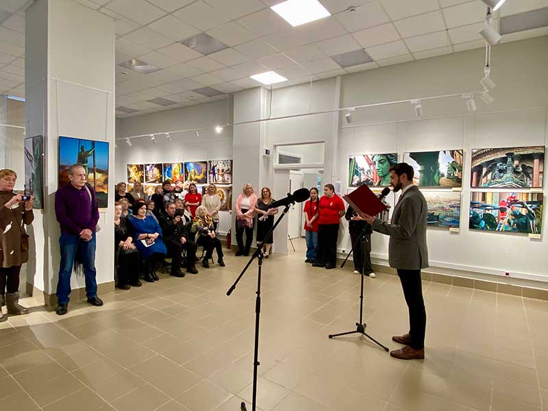 С приветственным словом выступил заведующий сектором истории реставрации Государственного музея «Исаакиевский собор» Владимир Васильевич Жуков. От имени директора Государственного музея «Исаакиевский собор»Юрия Витальевича Мудрова он зачитал поздравительный адрес участникам и гостям мероприятия. После церемонии торжественного открытия Владимир Васильевич провел подробную экскурсию по экспозиции.