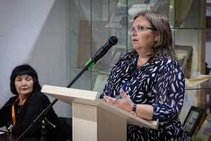 От имени директора Государственного музея «Исаакиевский собор» Ю. В. Мудрова заместитель директора по научной работе А. В. Голованова поздравила Пудожский историко-краеведческий музей с 55-летием со дня открытия. В своем сообщении на тему «Значение музея в современном городе» она познакомила коллег с основными направлениями деятельности Государственного музея «Исаакиевский собор», в том числе с предстоящими работами в Юсуповском дворце на Литейном.