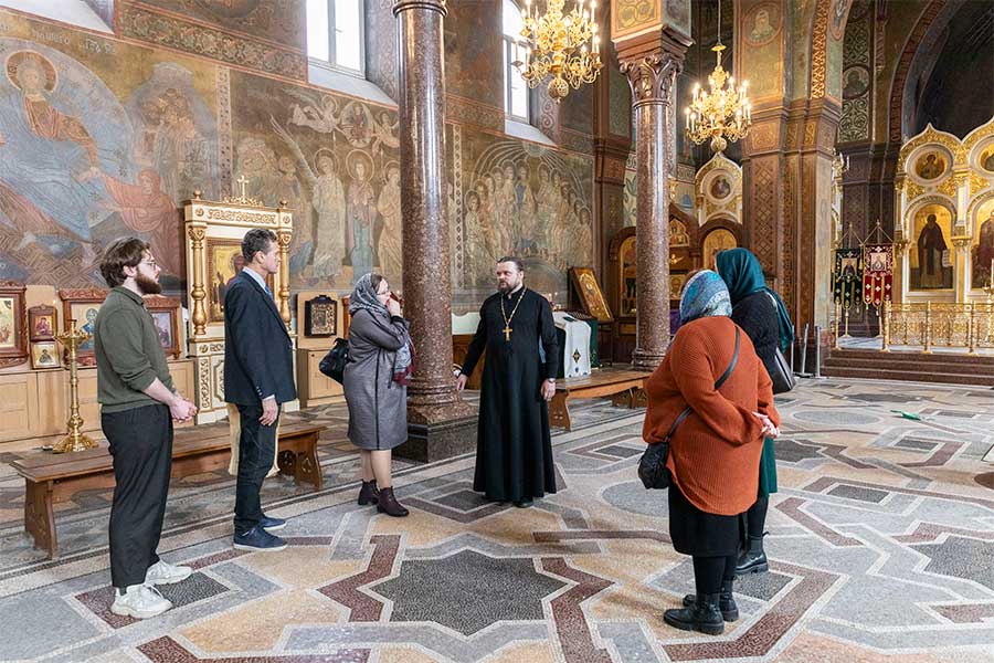 Для гостей иеромонах Филарет (Коноплев) провел экскурсию по монастырю, в ходе которой участники познакомились с историей и архитектурными особенностями обители.