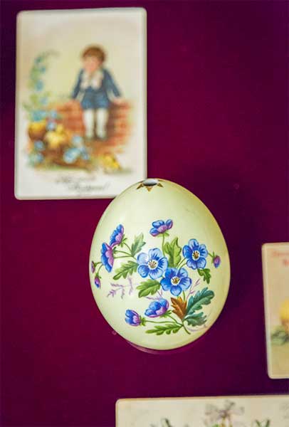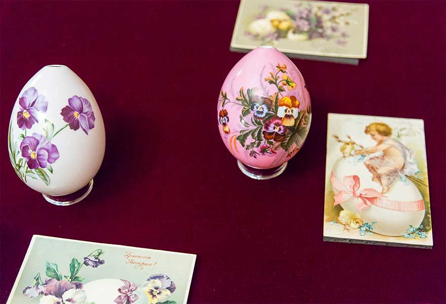С XVIII века помимо расписных натуральных яиц к Пасхе стали изготавливать специальные сувенирные яйца, украшенные росписью. Сюжеты их были разнообразны — лики святых и Евангельские сцены, пейзажи и храмы, сложные орнаменты и, конечно, цветы. Цветок в религиозном искусстве — это не только украшение, дань великолепию сотворенного мира. Сад, наполненный цветами, плодами и птицами, — напоминание об Эдеме, рае на земле, и мечта о рае Небесном.