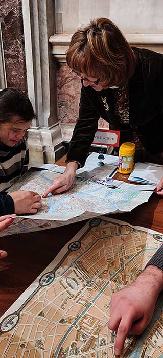 Две маленькие, но очень сплоченные команды с увлечением выполняли разнообразные задания игры: найти на карте то или иное историческое здание, выразить рисунком его назначение, выбрать из предложенных картинок правильный ответ, показать с помощью иллюстраций этапы строительства здания.