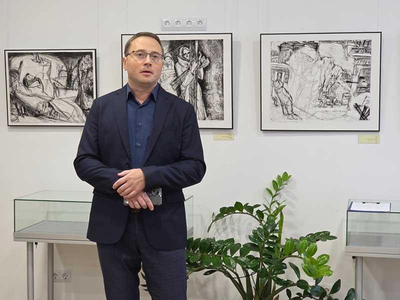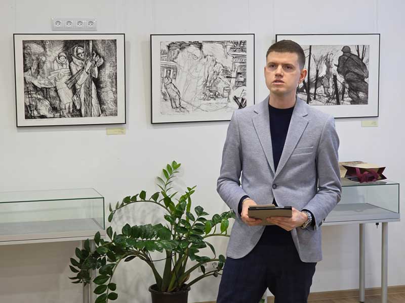 Особое внимание в своей речи С. Ю. Черномор уделил авторам представленных работ — выдающимся мастерам, таким как В. С. Слыщенко, Ю. М. Непринцев, А. Л. Каплан, А. Ф. Пахомов и другим. Многие из них были выпускниками Ленинградского института живописи, скульптуры и архитектуры имени И. Е. Репина. Кто-то провел всю блокаду в городе, а кто-то добровольцем ушел на фронт. Их объединила любовь к Родине и желание достоверно передать события того страшного времени. С. Ю. Черномор выразил уверенность, что выставка имеет большое значение для всех, кто интересуется историей страны и дорожит своим Отечеством. В завершение он от имени директора Государственного музея «Исаакиевский собор» Ю. В. Мудрова вручил приветственный адрес и книжные издания музея директору Гдовского музея истории края Н. Л. Сингатулловой.