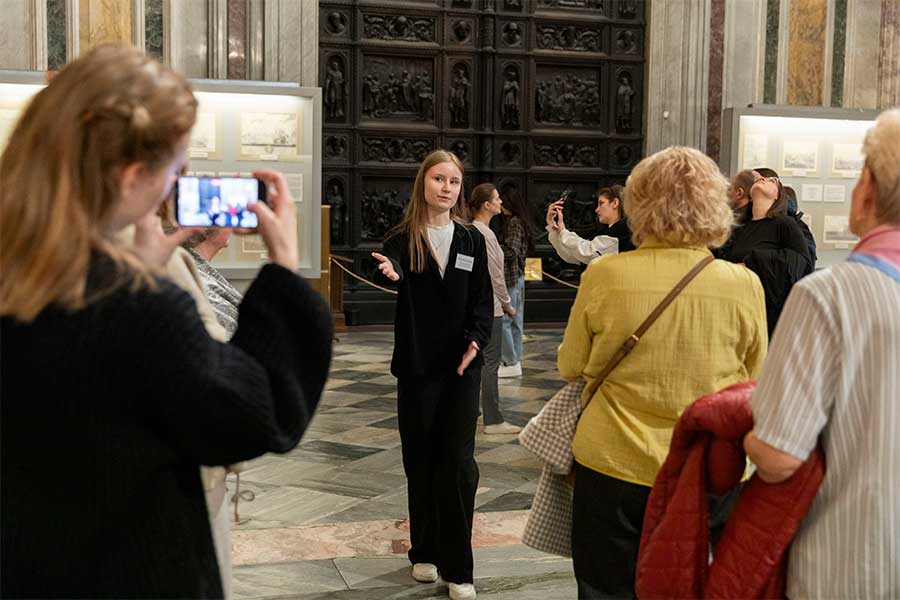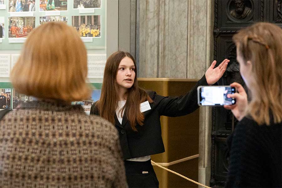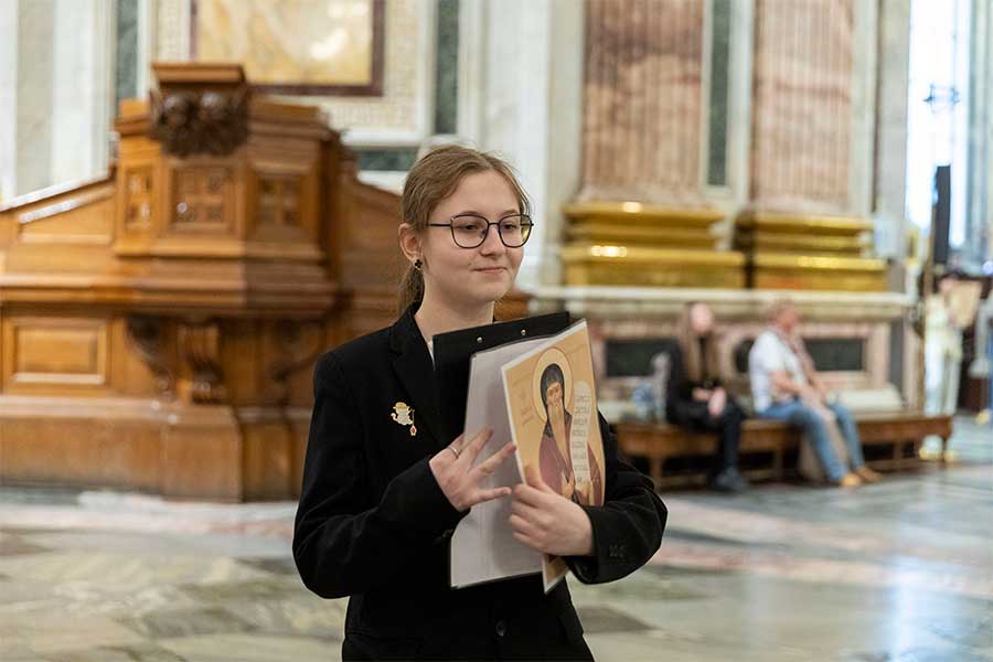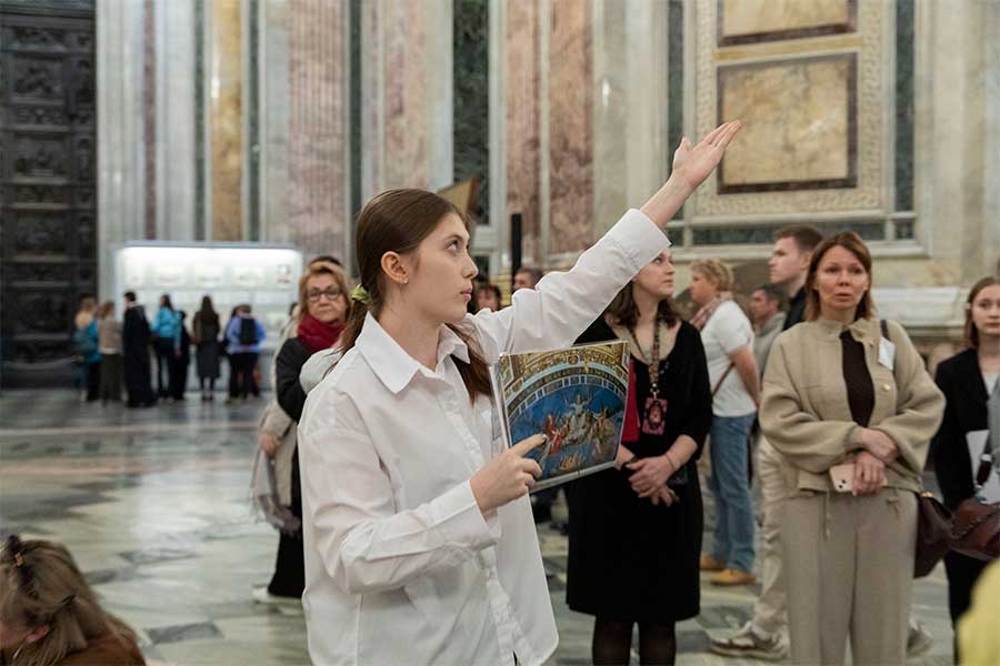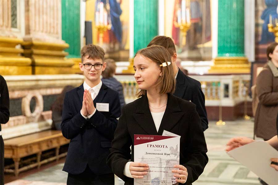 16 апреля в Государственном музее «Исаакиевский собор» ученики 6, 8 и 9 классов школы № 26 Невского района провели обзорную экскурсию на французском языке по экспозиции музея для учеников младших классов, педагогов и гостей. Экскурсия стала заключительным этапом музейно-образовательного проекта «Юный экскурсовод» и была посвящена 240-летию со дня рождения выдающегося архитектора, автора проекта Исаакиевского собора Огюста Рикара де Монферрана.