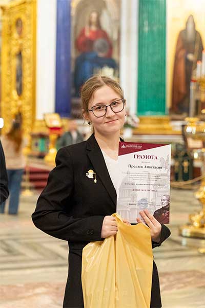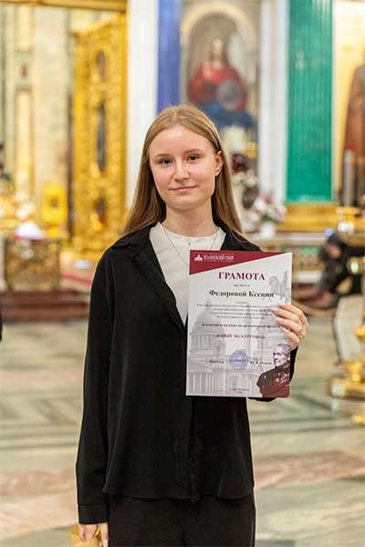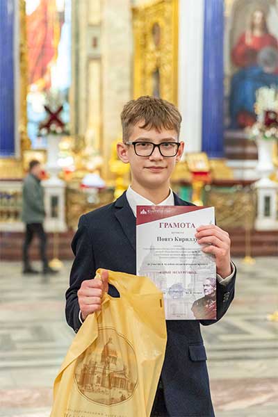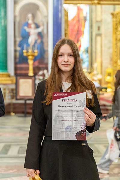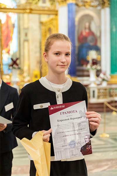 Во время рассказа учащиеся использовали дополнительные материалы — декоративный камень, смальту, репродукции росписей и мозаик. Речь каждого из участников была насыщена специальными терминами и художественными оборотами, что делало ее живой и интересной. Экскурсия завершилась торжественной частью — награждением юных экскурсоводов грамотами и подарками. В торжественном награждении принимали участие сотрудники отдела музейной педагогики — методисты К. В. Иванова, С. В. Кириллова и Е. А. Шипулина. Надеемся, что для ребят этот проект стал важным этапом на жизненном пути и что они продолжат изучать экскурсионное дело и совершенствоваться во французском языке.