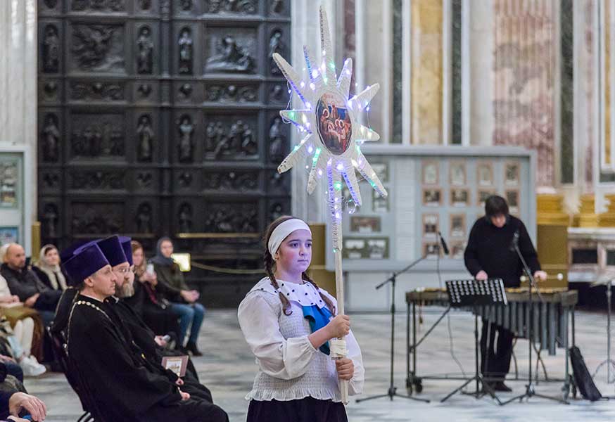 Государственный музей «Исаакиевский собор» и фонд «Наследие» представили петербуржцам и гостям нашего города программу, отражающую важнейшие традиции русской православной культуры. С древних времен в дни Рождественских праздников и на святках — от Рождества Христова до Крещения Господня — вертепные театры показывали рождественское действо как в церкви, так и в домах. В нем участвовали и взрослые, и дети, разыгрывая представление в виде кукольного театра в деревянном ящике (вертепе).
