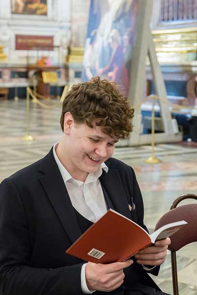 С приветственным словом к собравшимся обратился директор Государственного музея «Исаакиевский собор» Юрий Витальевич Мудров. Юрий Витальевич отметил, что год был ознаменован празднованием 80-летия Великой Победы, в честь которого была проведена конференция юных исследователей. Он подчеркнул значимость исследовательской работы, отметив, что к ней относятся с должным вниманием и уважением. Результатом кропотливого процесса изучения, познания, поиска и открытия стало настоящее издание, где авторы работ смогут увидеть плоды своего труда.