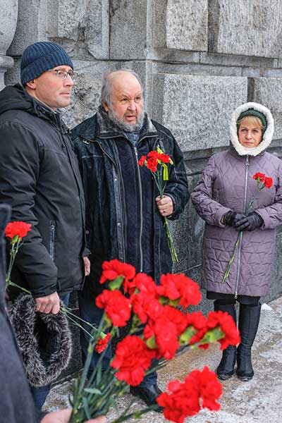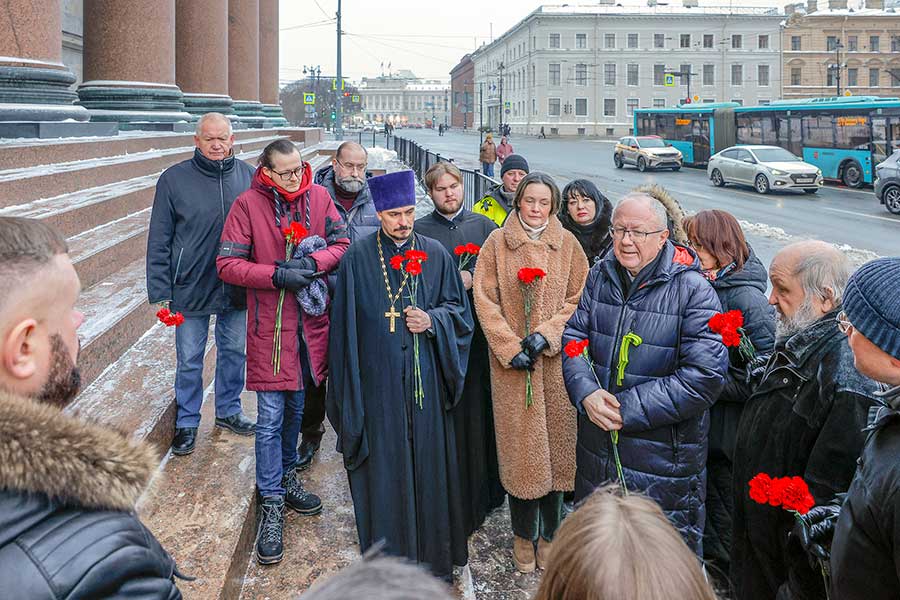 К церемонии возложения цветов присоединился штатный священник Исаакиевского собора протоиерей Аркадий Рахов. Обратившись к собравшимся, он напомнил о духовной силе и стойкости ленинградцев, чей подвиг стал непреходящим примером мужества и веры. В сослужении с другим клириком храма отец Аркадий совершил заупокойную литию по всем погибшим и усопшим в годы блокады.