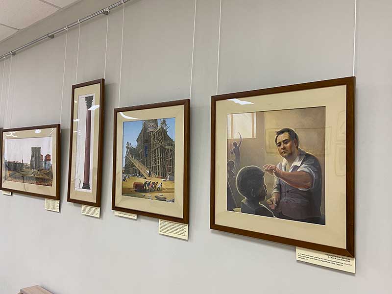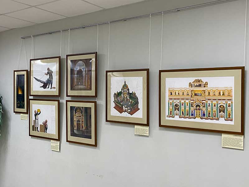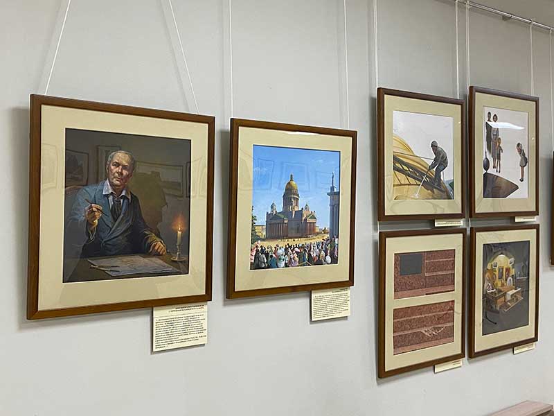 Экспозиция представляет серию живописных работ, созданных специально для детской книги «Исаакиевский собор и его создатели. 1818–1858», выпущенной Государственным музеем «Исаакиевский собор» в 2025 году.