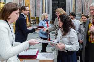 Открыл мероприятие директор Государственного музея «Исаакиевский собор» Юрий Витальевич Мудров. Он отметил, что сегодня музей может представить плод своих трудов: за созданием издания стоит большая исследовательская и фондовая работа. Директор также подчеркнул особую значимость изданного альбома-каталога, посвященного коллекции почтовых карточек, выпущенных в осажденном и послевоенном Ленинграде. В 1940-е годы, когда город переживал блокаду и восстанавливался из руин, открытки стали не просто средством связи, но и важнейшим визуальным документом эпохи. Каждая из этих карточек — живое свидетельство мужества ленинградцев, их стойкости и возвращения к мирной жизни.