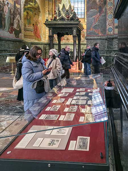 Заместитель директора по экспозиционно-выставочной работе Марина Евгеньевна Хайретдинова выразила признательность владельцам семейных архивов, предоставившим на выставку столь важные предметы, среди них — Наталья Игоревна Корнилова и Андрей Александрович Харшак. В другой витрине представлены уникальные почтовые карточки из фондов Государственного музея «Исаакиевский собор», изданные в годы блокады.