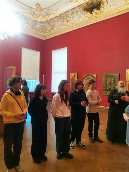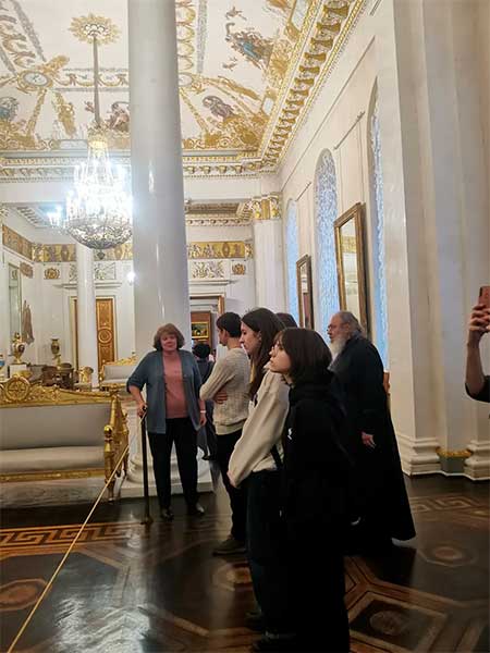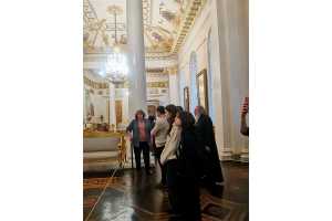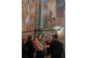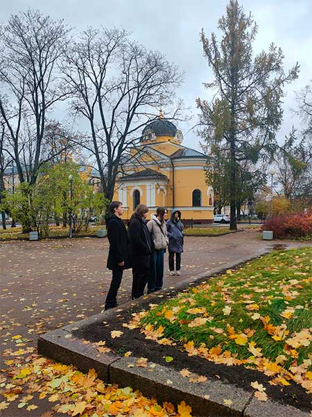 По возвращении в Санкт-Петербург программа дня продолжилась знакомством с историей храма Воскресения Христова, более известного как Спас на Крови – выдающегося памятника русского зодчества, поражающего воображение своим мозаичным убранством. Экскурсия позволила глубже понять замысел создания храма-мемориала на месте трагических событий.