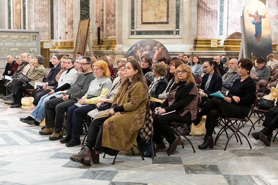 Он рассказал об уникальных материалах, хранящихся в университете: интереснейших чертежах, документирующих процесс создания собора, и коллекции из около 90 книг из личной библиотеки Монферрана с его пометками. Продолжая мысль отца Романа о символическом наследии, Игорь Павлович подчеркнул, что в соборе соединился духовный замысел, его художественное воплощение и инженерная мысль, без которой такое сооружение невозможно.