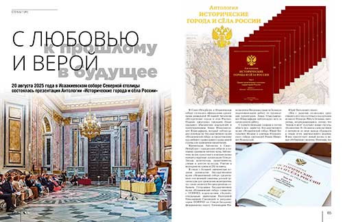 В октябрьском номере информационно-аналитического журнала «Вестник. "Зодчий 21 век"» (3(96) /2025) вышла статья, посвященная презентации уникальной 10-томной антологии «Исторические города и села России», состоявшейся 20 августа 2025 года в Исаакиевском соборе.