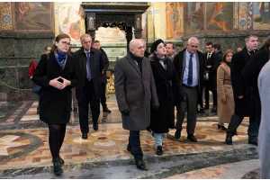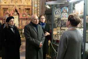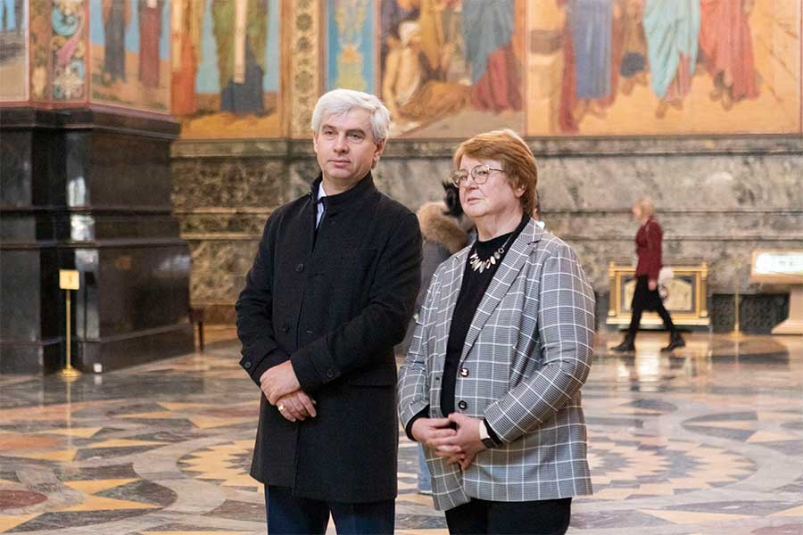 В храме «Спас на Крови» от имени директора Государственного музея «Исаакиевский собор» Юрия Витальевича Мудрова гостей приветствовала заведующая выставочным залом Часовни-музея Елена Игнатьевна Малявина. Она ознакомила делегацию с основными направлениями деятельности музея и вручила памятные подарки. В Исаакиевском соборе гостей встречал и. о. начальника музея-памятника Евгений Евгеньевич Козлов.