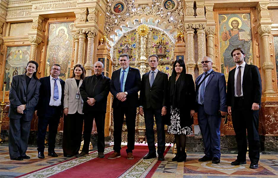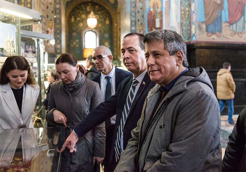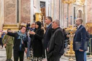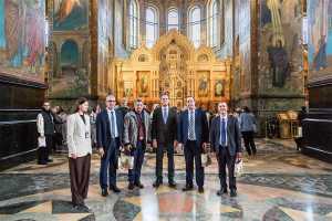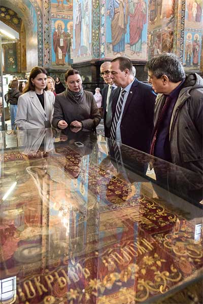 В музее-памятнике «Спас на Крови» участники делегации погрузились в историю создания храма, узнали о мемориальном значении Спаса на Крови, который был возведен на месте смертельного ранения императора Александра II. Особое впечатление на гостей произвело мозаичное убранство, являющееся одним из крупнейших собраний мозаики Европы, общей площадью более 7000 квадратных метров.