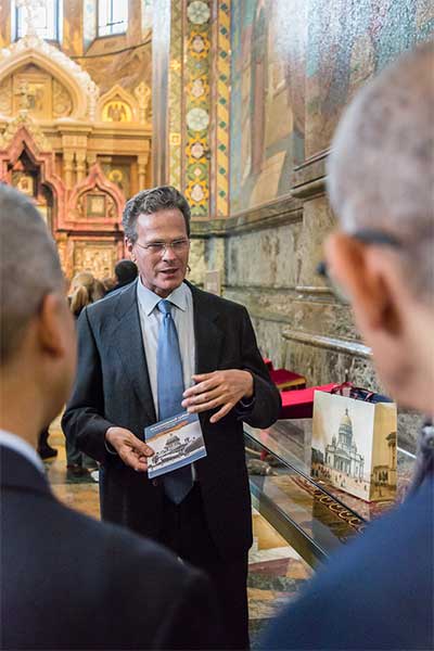 Делегацию встречали начальник музея-памятника «Исаакиевский собор» А. А. Арютин и начальник музея-памятника «Спас на Крови» И. В. Демидов. Они приветствовали гостей от имени директора Государственного музея «Исаакиевский собор» Ю. В. Мудрова. Участникам делегации были вручены сувениры в знак дружбы и на память о посещении музея.