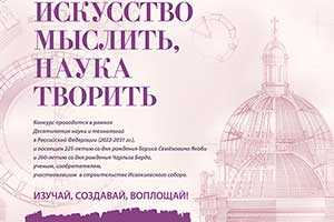 1 апреля стартует детско-юношеский творческий конкурс рисунка «Искусство мыслить, наука творить», посвященный 225-летию со дня рождения Бориса Семеновича Якоби и 260-летию со дня рождения Чарльза Берда, а также ученым и изобретателям, участвовавшим в строительстве Исаакиевского собора...